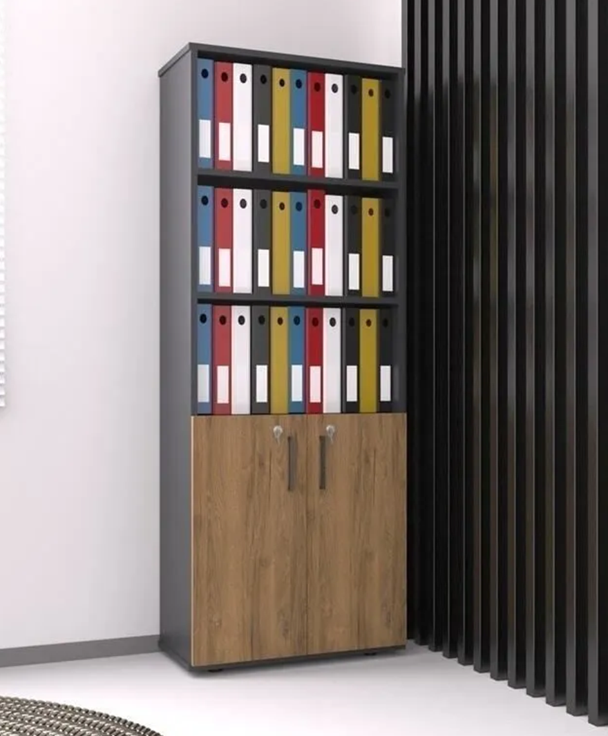 Neden Antrasit Gövde Kilitli Ahşap 2 Kapak Detaylı Ofis Dolabı?