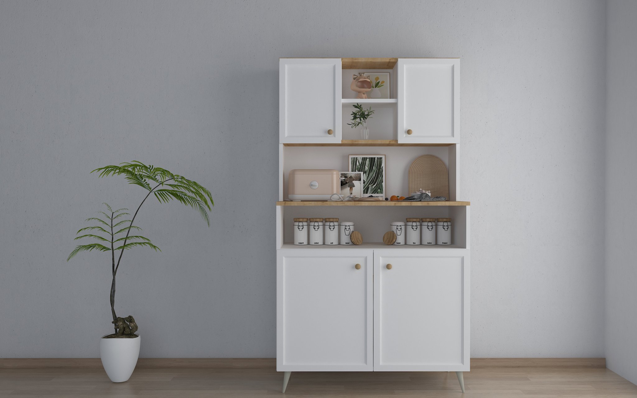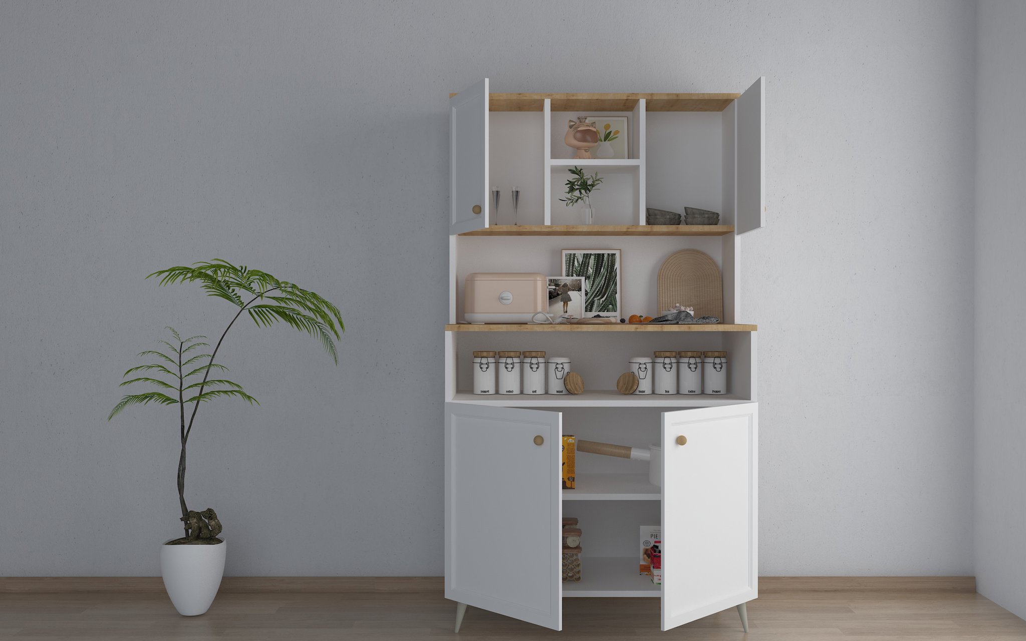 Mutfağınızda hem düzeni hem de şıklığı bir arada görmek istiyorsanız, bu çok amaçlı dolap ideal bir çözüm!