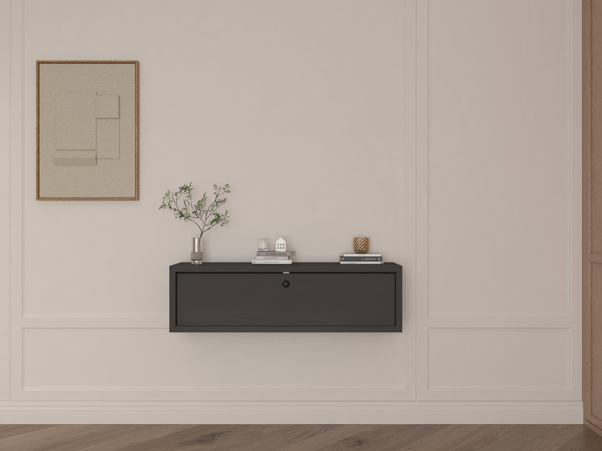 Ahşap-Antrasit Detaylı Duvar Rafı