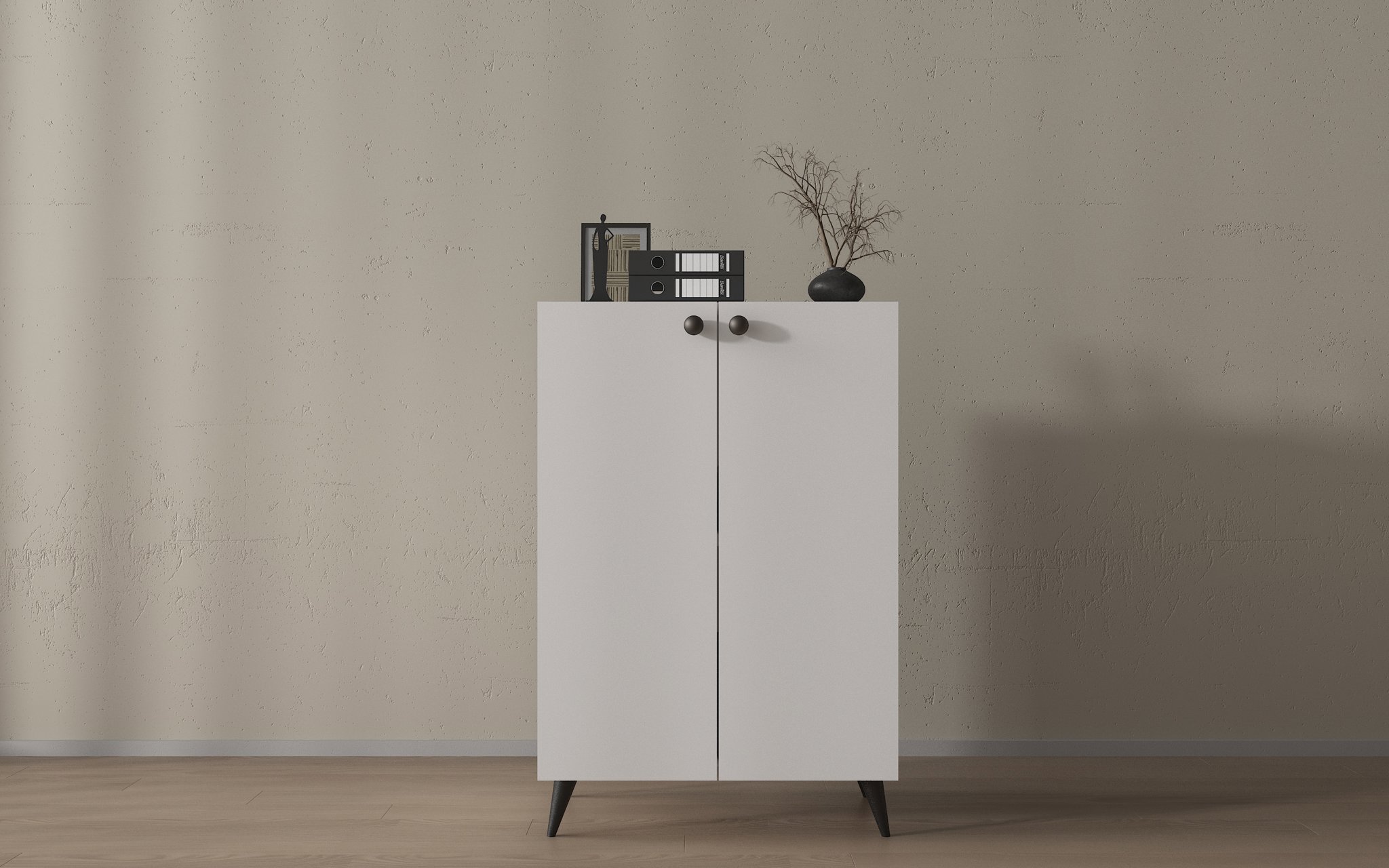 Ofis düzeninizi şıklık ve fonksiyonellikle tamamlayın! Beyaz melamin kaplamasıyla zarif bir tasarıma sahip bu çok amaçlı ofis dolabı, hem işlevsel hem de estetik bir çözüm sunuyor.
