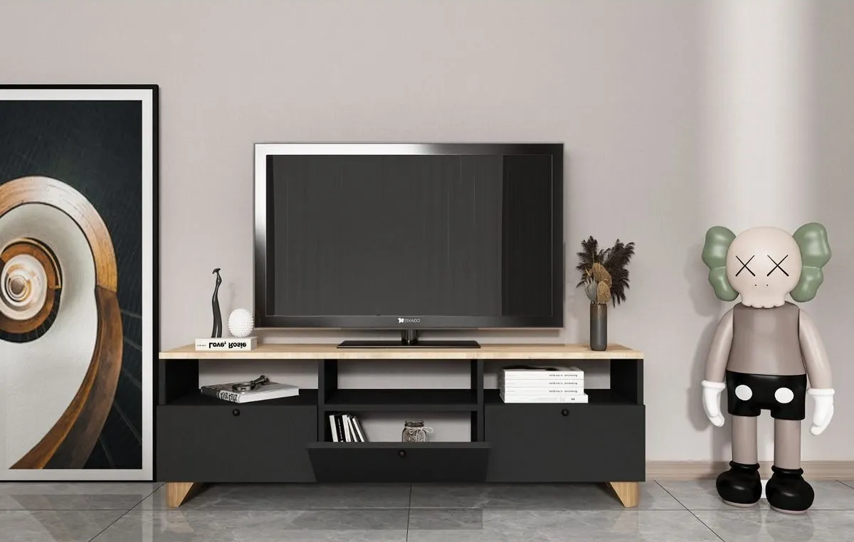 Evinizin havasını değiştirecek modern tasarım! Bu şık ve fonksiyonel TV ünitesi, antrasit ve atlantik çamın mükemmel uyumunu bir araya getiriyor. Zarif yapısı ve geniş saklama alanı ile hem şıklığı hem de düzeni evinize getiriyor.