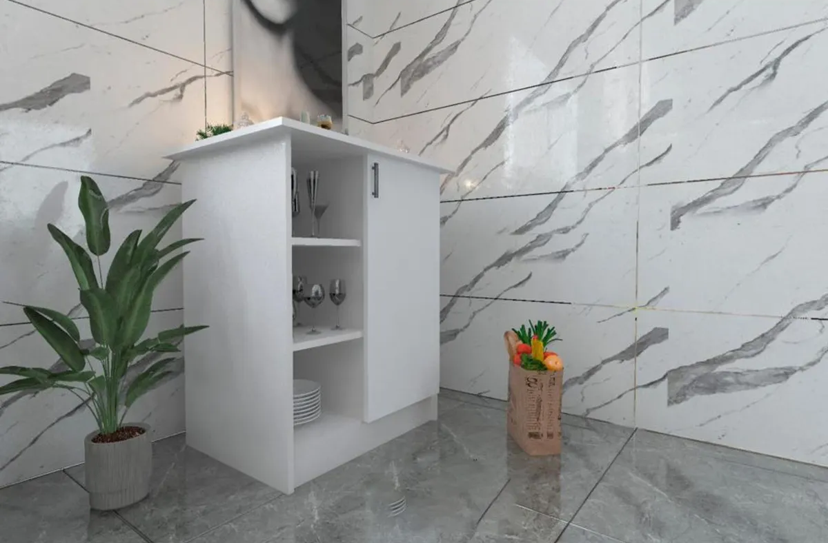 Mutfak adası olarak kullanılabilen bu dolap, hem depolama alanı hem de çalışma alanı sağlar. İster mutfağınızda ister farklı bir yaşam alanınızda rahatça kullanabilirsiniz.
