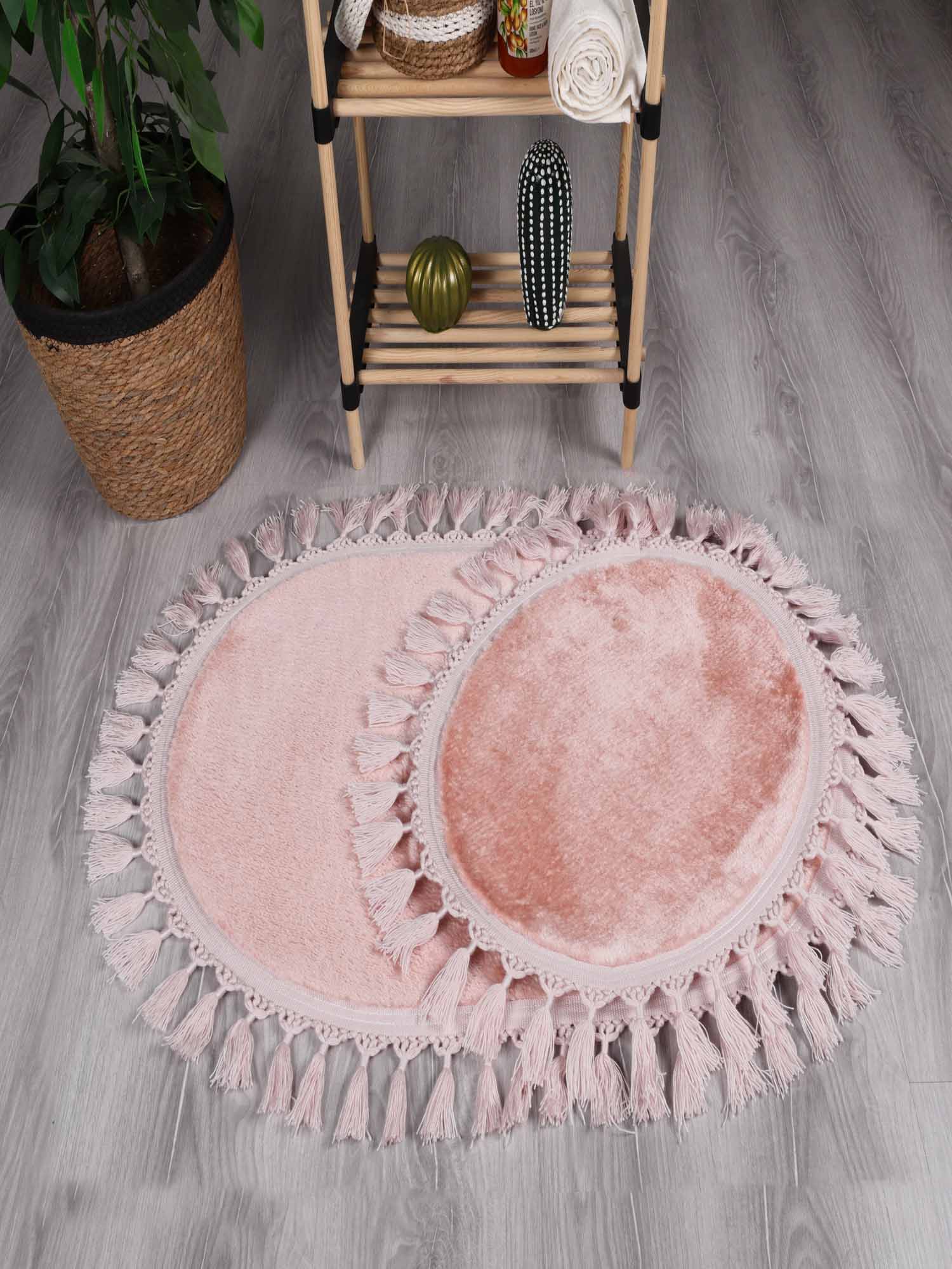 Simirna Dekoratif Peluş Oval 60x100-50x60 Ponpon Saçaklı Klozet Takımı
