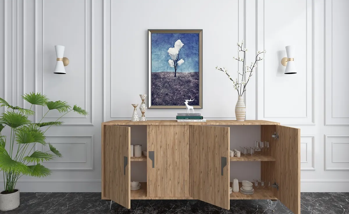 Modern çizgileri ve zarif ahşap rengiyle dikkat çeken Trend Tasarım 4 Kapaklı Konsol, işlevselliği ve şıklığı bir arada sunar. Geniş boyutlarıyla evinizin ihtiyaçlarına tam uyum sağlar.