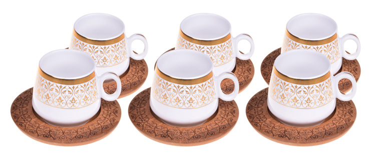 Set İçeriği: 6 kişilik takım; 6 adet fincan ve 6 adet desenli altlık içerir.