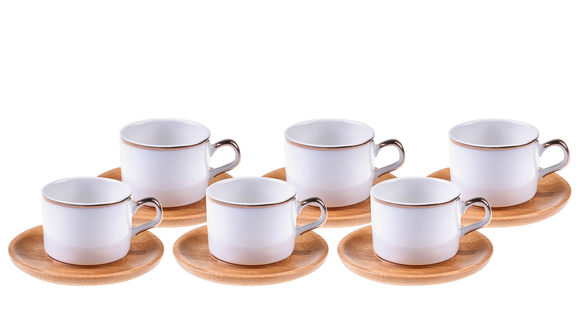 Affo 6 Kişilik Kahve Fincan Takımı, zarif altın yaldız detaylarıyla kahve keyfinizi taçlandırır ve sofralarınıza eşsiz bir zarafet katar.