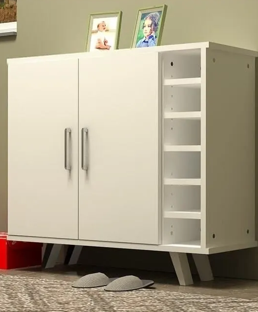Yanları Raflı İki Kapaklı Ayakkabılık, giriş alanınızda hem şıklık hem de düzen yaratırken, pratik depolama çözümleri sunar. Ayakkabılarınızı, aksesuarlarınızı ve diğer eşyalarınızı düzenli bir şekilde saklamak için ideal bir mobilya parçasıdır.